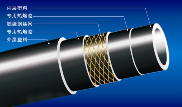 ●结构优良,管材的增强骨架与内外层塑料互相包容成为一个整体,无内外层塑料与增强体剥离之忧。